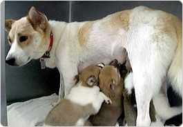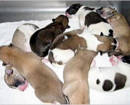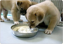 また仔犬の頭数が2、3匹であればその後の授乳を全て母犬に任せても良いが、今回のように仔犬の頭数が多い場合は全てを母犬に任せると母犬の栄養がミルクとして仔犬に取れすぎて母犬が栄養不足になってしまうことがあるため、仔犬用の哺乳瓶を使って犬用の粉ミルクをあげることにより、母犬の負担を減らさなくてはなりません。