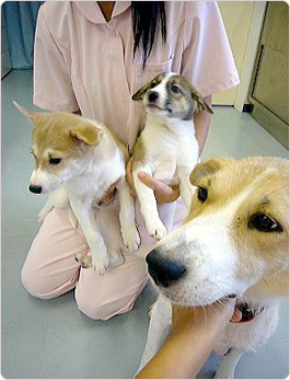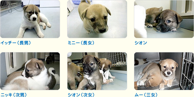抱っこしている左側がイッチー、右側がニッキ、右手前が母犬シロです。