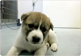 一命を取り留め、その後、愛護団体に里親さんを探していただくことになっていたが、性格が良く、愛嬌もあるため、うえの犬猫病院の看板犬となる。