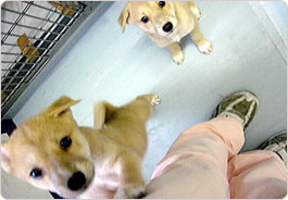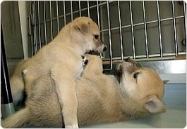 昨日、一昨日とシロは仔犬達が気になって全くケージから出てこようとしなかったが、ようやく少し落ち着いたのか仔犬達のそばを離れる余裕が少し出てきた。シロは普段全く怒る事のない大人しい犬だが、昨日あたりは仔犬を取ろうとすると時折、唸ることがあった。出産時や出産直後は母犬の気が立っていて攻撃的になることが良くあるので必要以上に仔犬を触らないようにしなければならない。