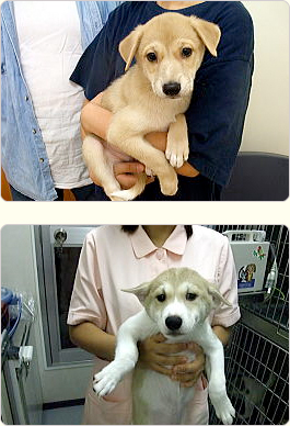 本日、最後に残っていたニッキが里子に出ました。ニッキの里親先は前に日記で書いた埼玉県で動物看護師をされている北村さんの友人である新井さん宅です。新井さんも埼玉県在住で本日、北村さんと一緒にわざわざ埼玉県からニッキを引き取りに来ていただきました。(一番下の写真)ありがとうございます。ニッキは1人長く病院に残っていたので、「お手」や「お座り」などを教えてみたのですが、凄く覚えが早く「お手」も「お座り」も10分位で覚えました。(一番上の写真)シロとも毎日楽しそうにじゃれ合っていて、シロ自身も楽しそうだったので、その分お別れが寂しそうでした・・・。