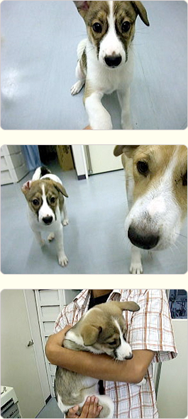 2008年4月30日、1人で散歩中の所を車にハネられ瀕死の状態でうえの犬猫病院に運び込まれる。